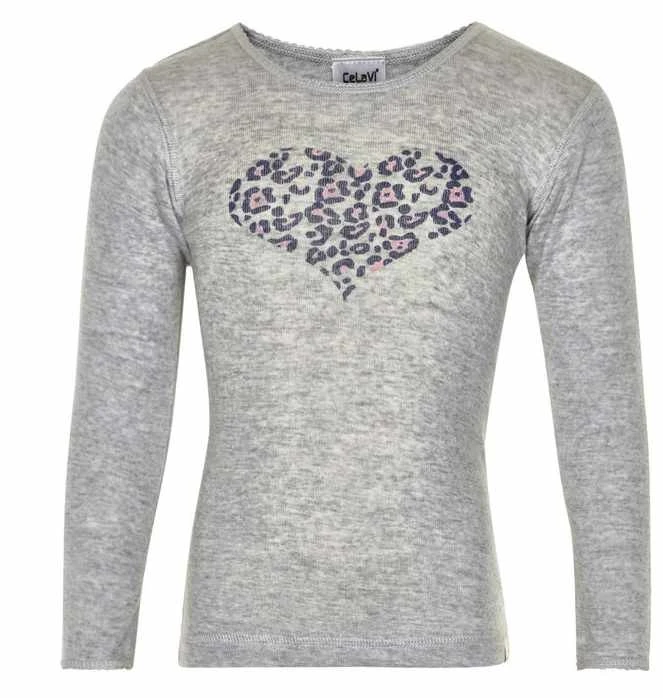 Celavi Mädchen Langarmshirt aus Merino Schurwolle in grau melange mit Herz