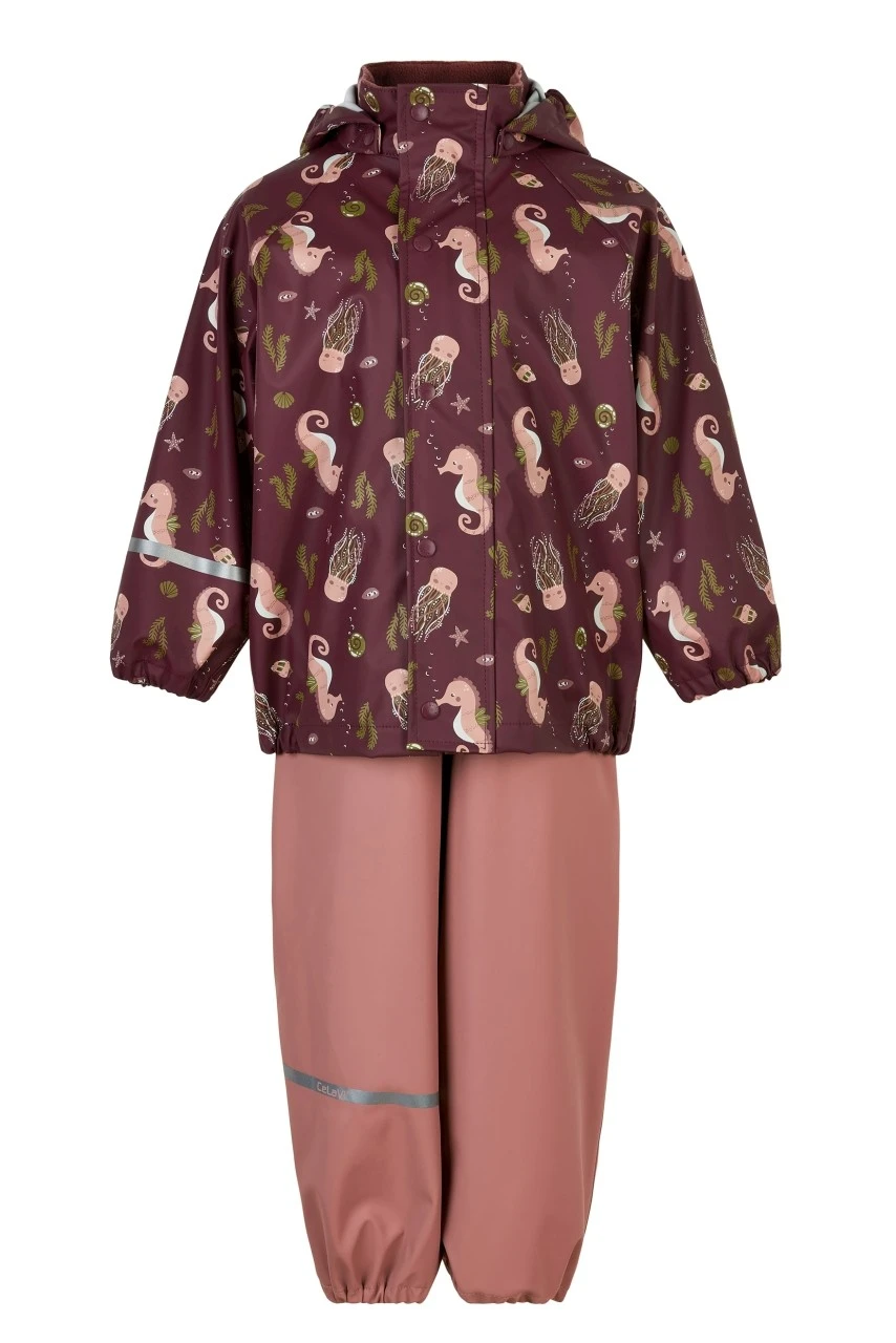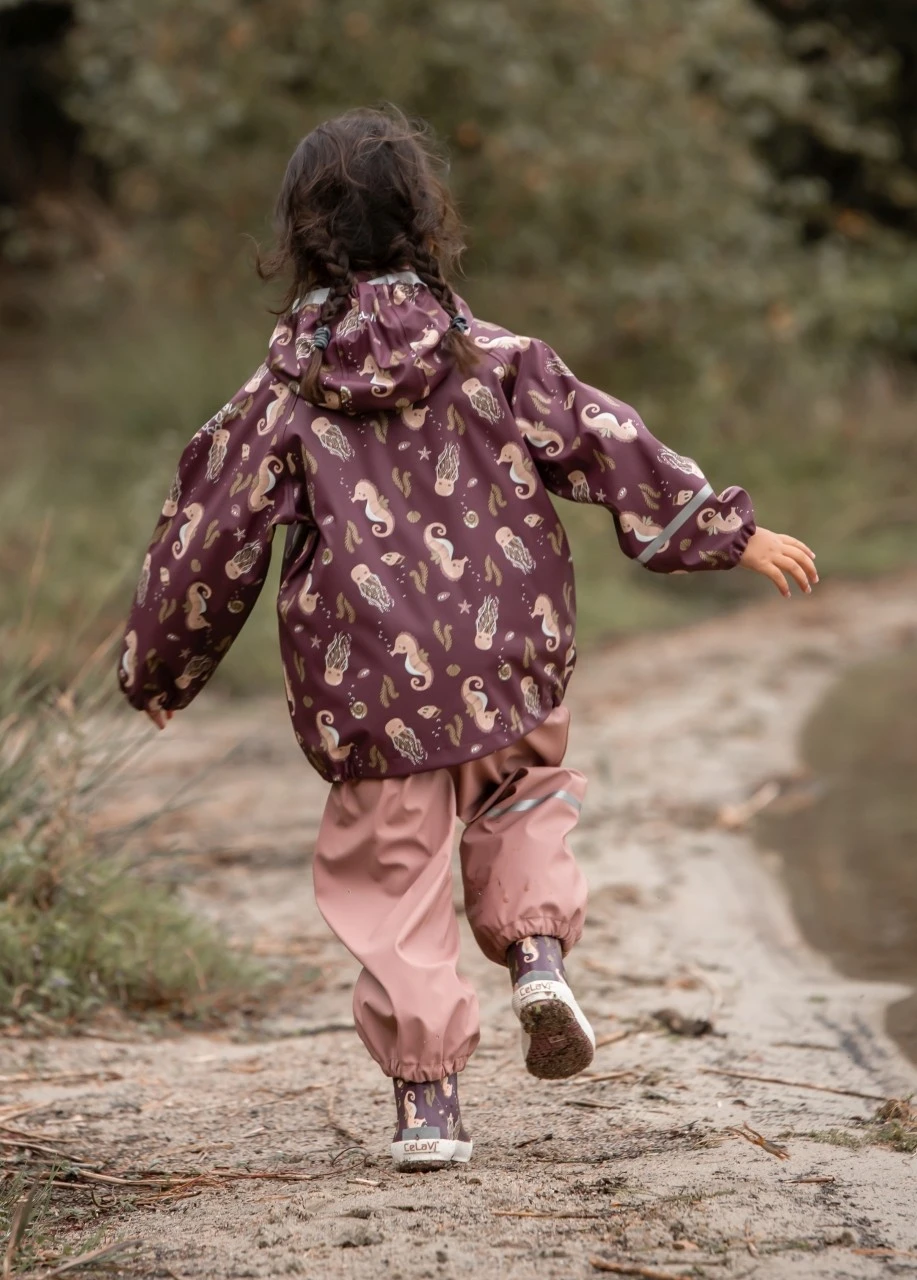 CeLaVi Mädchen Regenanzug 2 Teiler Seepferdchen bordeaux rosa