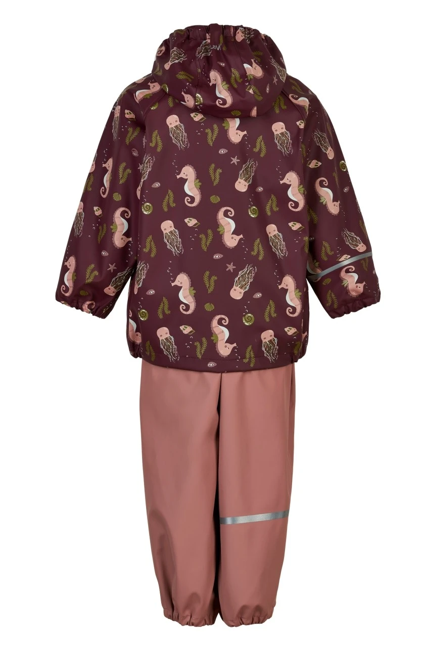 CeLaVi Mädchen Regenanzug 2 Teiler Seepferdchen bordeaux rosa
