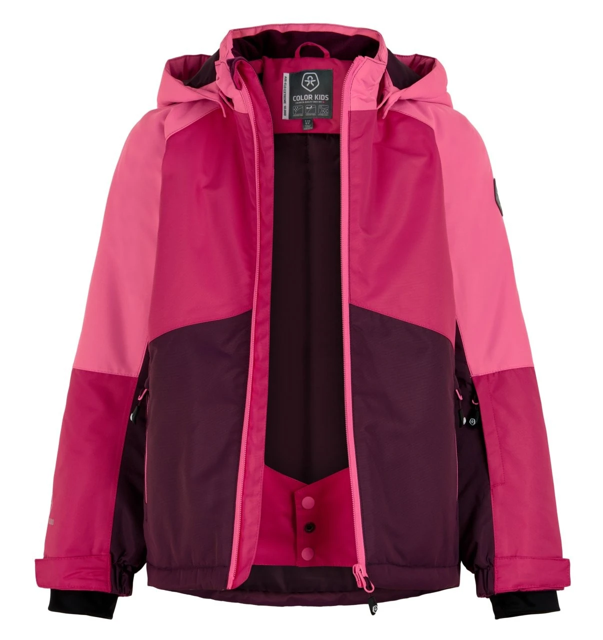 Warmer Kinder Skianzug aus der Color Kids Winter Outdoor-Kollektion. Farbe pink mit purple. Wunderbar warm und kuschelig, lieferbar in schönen Farbkombinationen. Atmungsaktiv , winddicht und wasserdicht.