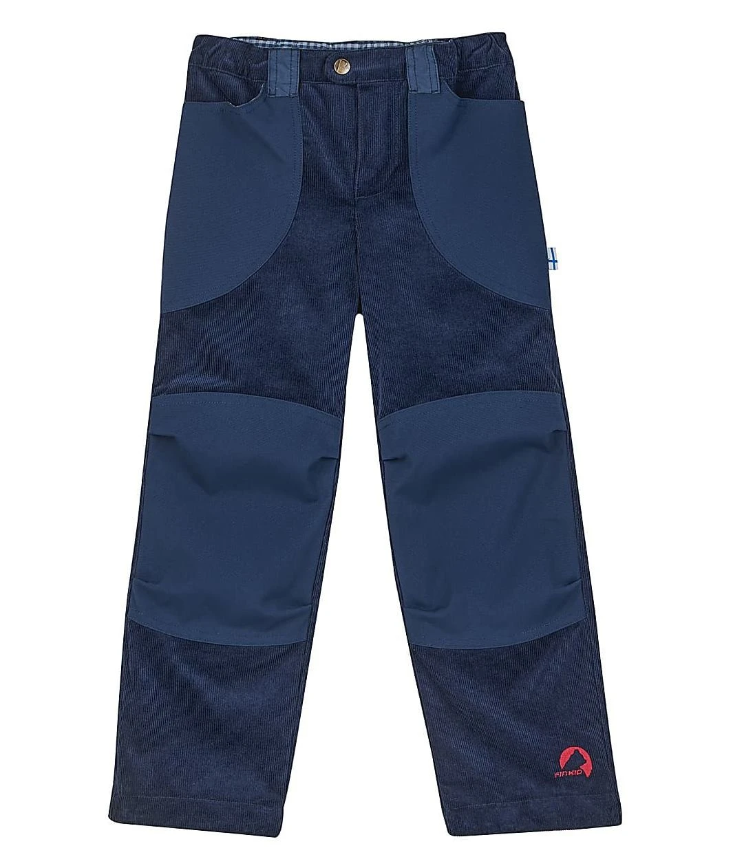 Robuste Finkid Kinder Cordhose im Workerstil. Strapazierfähig dank der PU beschichteten Verstärkungen an Knien und Po . Durch den elastische Gummizug im Rückenbereich sitzt die Hose auf der Hüfte ohne zu rutschen. In den beiden Taschen sind wichtige Kleinigkeiten schnell und sicher verstaut. Gerade bei Waldspaziergängen finden Kinder viele sammelnswerte Sachen wie Tannenzapfen, schöne Steine und Kastanien. Weit und bequem geschnitten.