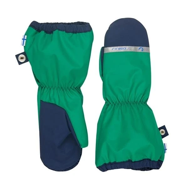 Kuschelwarme fleecegefütterte Outdoorfäustlinge aus hochwertigem Funktionsgewebe mit langer Stulpe. Die schönen Finkid Kinderhandschuhe Pakkanen haben ein wärmendes Fleecefutter und Reflektorstreifen. Das wetterfeste Funktionsgewebe ist robust und hält Kälte, Nässe und Schmutz ab. Silberne Reflektorstreifen machen sichtbar bei schlechten Sichtverhältnissen. Die einzelnen Fäustlinge können durch einen Druckknopf zusammen geknöpft werden. Das Aussenmaterial ist strapazierfähig und trotzdem weich und angenehm im Griff. Ideal für den Waldkindergarten, denn die lange Stulpe kann prima über den Jackenärmel gezogen werden.