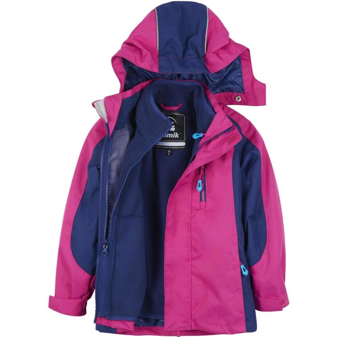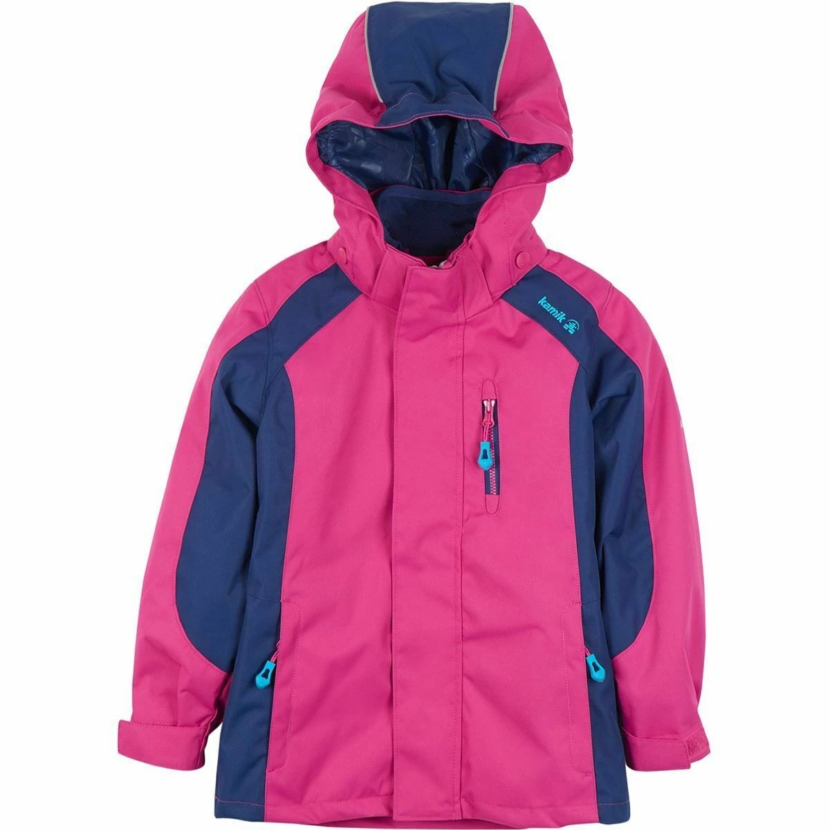 Atmungsaktive Mädchen Funktions-Outdoorjacke von Kamik. 3 in 1 System mit auszippbarer Innenjacke aus kuschelweichem Fleece. Bequem geschnitten, winddicht und wasserdicht. Hochwertige Verarbeitung mit vielen stylischen Details. Dieses Kamik Modell fällt etwas schmaler aus, daher sehr gut für schlanke zierliche Mädchen geeignet.