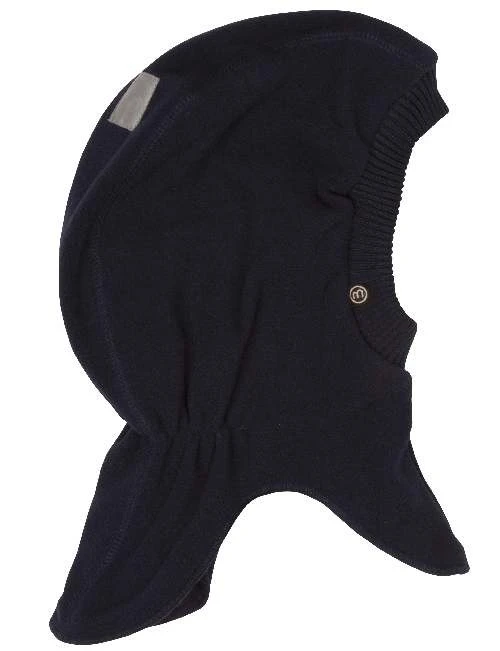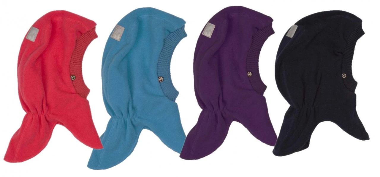 Kuschelwarme Wintermütze von Minymo, eine praktische Schlupfmütze aus weichem Fleece mit Baumwollfutter. Die praktische Schlupfmütze wird komplett über den Kopf gezogen, nur das Gesicht schaut heraus. Der integrierte Kragen ersetzt einen Schal, und auch die Ohren sind gut geschützt. Prima geeignet für den Waldkindergarten, zum Drunterziehen unter den Fahrradhelm und zum Skifahren. Für gute Sichtbarkeit in der dunklen Jahreszeit ist am Hinterkopf ein kleiner Reflektor aufgenäht.